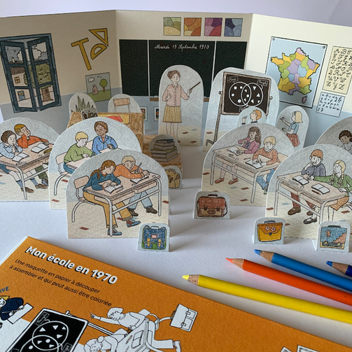 Pour l’achat de la maquette Mon École en 1970 (ou une autre si le coeur vous en dit 😊 ) recevez Julie et Pierre, deux poupées en papier à colorier, découper et à habiller 👗🧒👕.