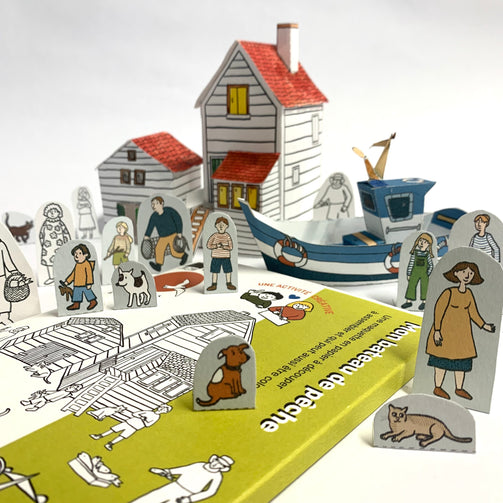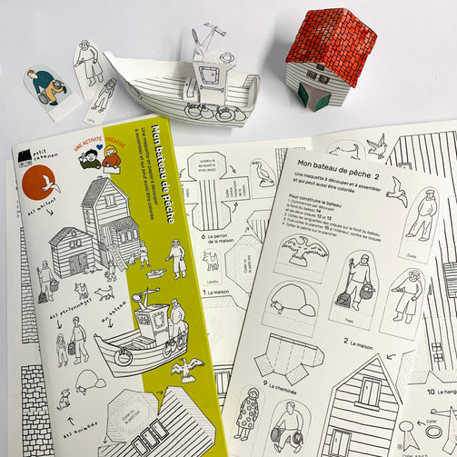 Faites découvrir à vos enfants l'univers de la pêche maritime en leur offrant notre maquette à colorier, découper et assembler. Offrez-leur le plaisir de créer leur propre bateau et de construire leur cabanon où ils pourront faire vivre les personnages et animaux.