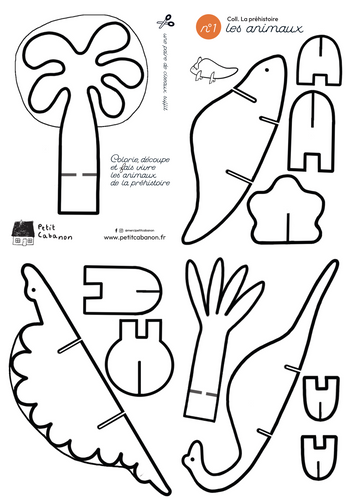 De gros animaux préhistoriques à colorier, découper et assembler !