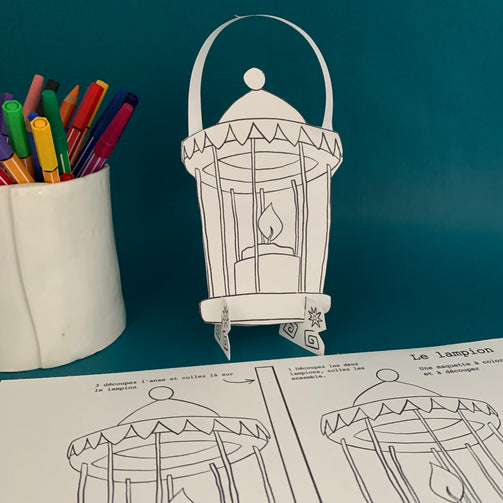Les éditions de Pierre de plumes m'ont commandé un lampion. Celui que l'on trouve dans l'album L'ours et la fée. J'en ai dessiné deux. Un lampion en volume et un autre plus facile et rapide à réaliser pour les enfants plus jeune.